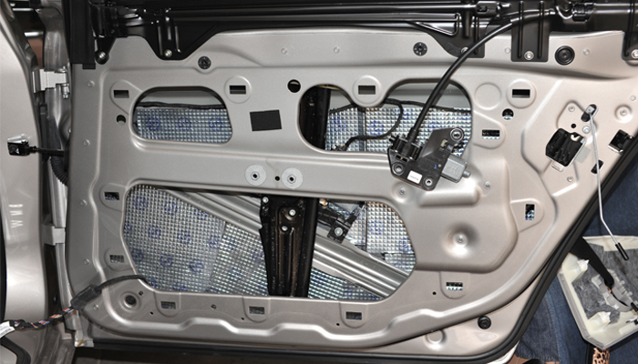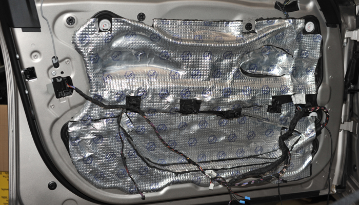 四门使用的是俄罗斯进口军工隔音STP炸弹,也是隔音里面最好的隔音止振板,车门内层隔音能增加门板铂金的厚度,阻挡噪音传播和抑制共振,外层隔音能使门板形成一个箱体结构,阻绝“声短路”,为喇叭提供一个最理想的工作环境。