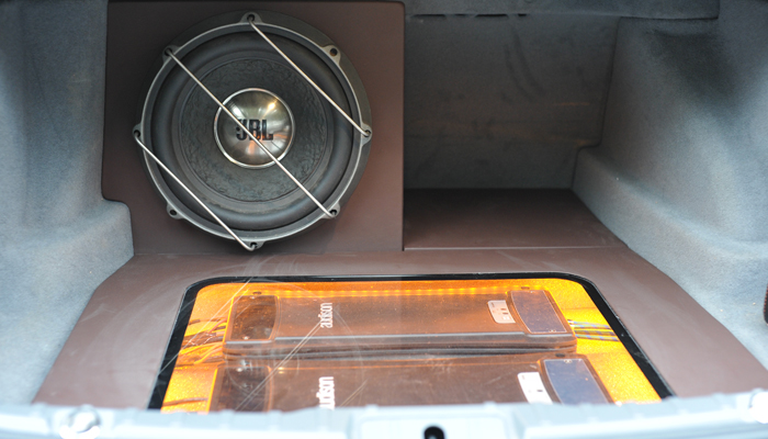 美国JBL P1222 12寸低音喇叭倒模安装在后备箱。