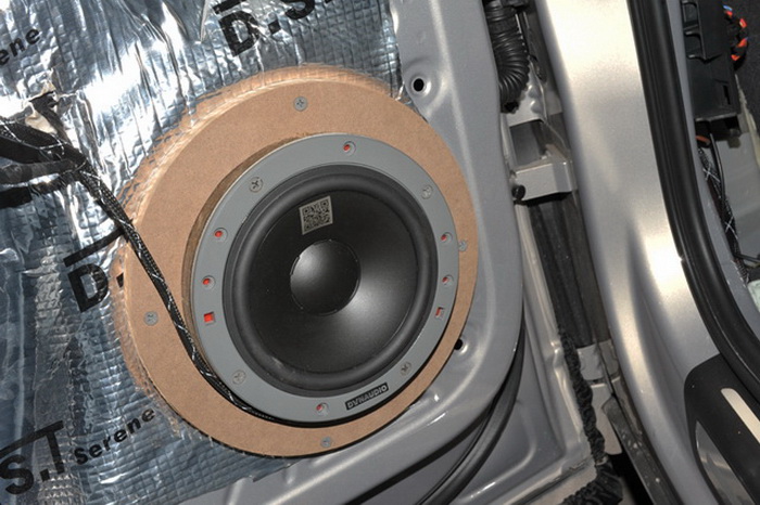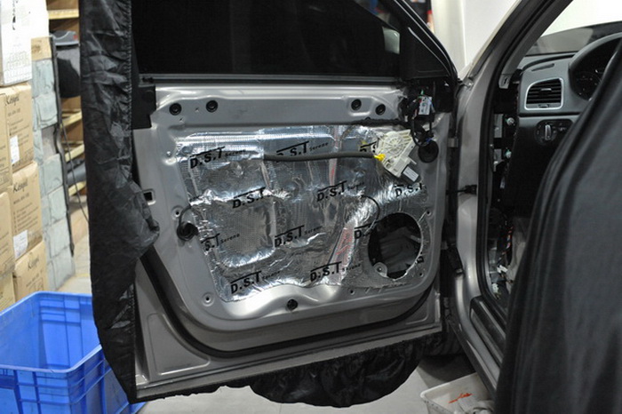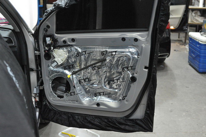 汽车在行驶过程当中产生的噪声也会对汽车的音响品质产生较大的影响,所以重庆三正的改装技师使用DST隔音材料对汽车的门板做了双层的隔音处理。门板的双层隔音一方面能够有效的降低噪声的传播,另外一方面还能减少中低音喇叭的功率损耗,从而让音乐的品质更加的出色。改装完成奥迪Q3也有了夏天的味道。