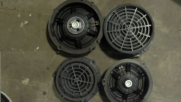 这款45TFSI的A8L,原车配置只有10喇叭,其中前门中音、低音各一只,仪表台两侧高音各一只,后门高音和中低音各一只。喇叭也是普通货色,无生产厂家,无铭牌,无参数的“三无”产品。廉价的纸盆,廉价的塑料支架,档次和20万左右的帕萨特原车音响相当,怎能出好声音呢?对音质有要求的车友们,赶紧扔了吧!趁早改装发烧音响,不要再对它报有幻想了。