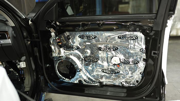 隔音工程被称为汽车音响改装的“基础工程”,不仅可以降低车辆行驶时的风噪、路噪、胎噪、发动机噪音,还可以为音响创造一个理想的工作环境,让音响表现出最佳的音质。车主选择了品质优秀的纯天然丁基橡胶材质的博亚BOYAR顶级隔音止振王,加大能低频王材料。