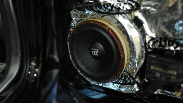 后门也是原位安装摩雷玛仕舞两分频套装喇叭。安装完毕之后再合上门板,从外面是看不到改装痕迹的。