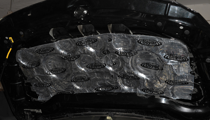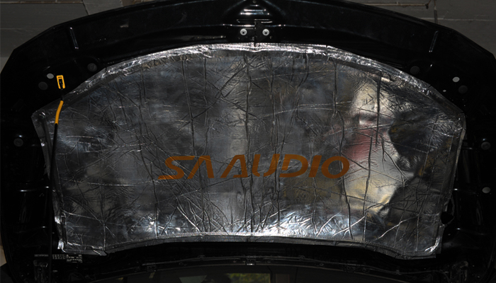 第一层使用博亚隔音材料进行隔音,然后在使用萨迪引擎卫士进行第二道防护,引擎盖隔音不仅能降低发动机噪音,还能防止漆面因长期高温烘烤导致老化。