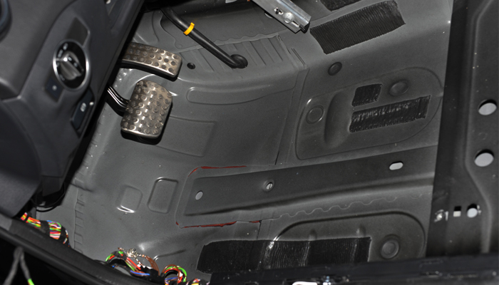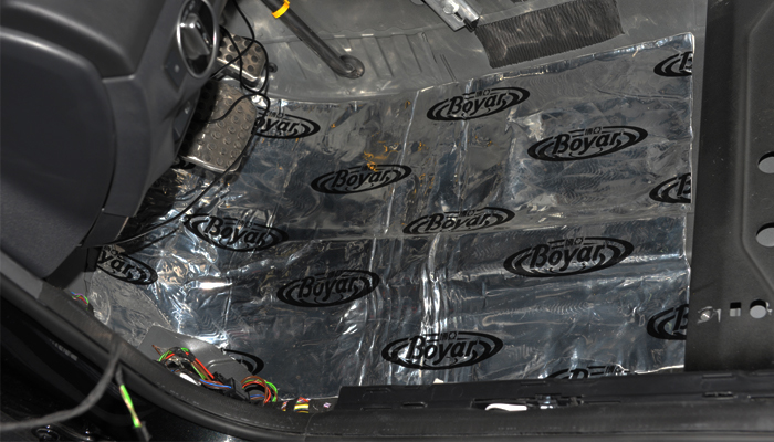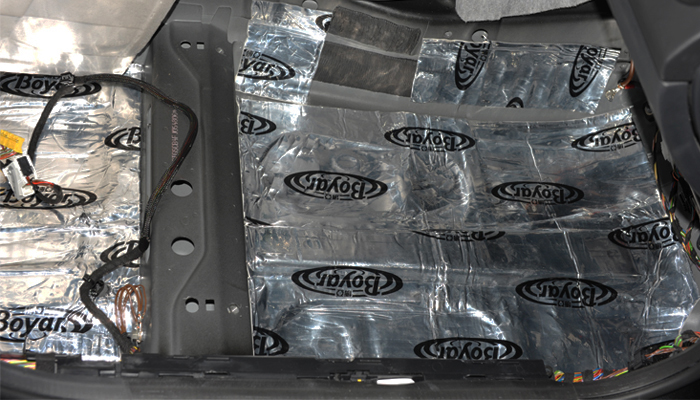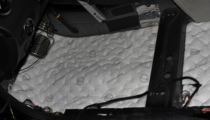 发动机噪音大,于是我们将针对发动机做双层隔音。