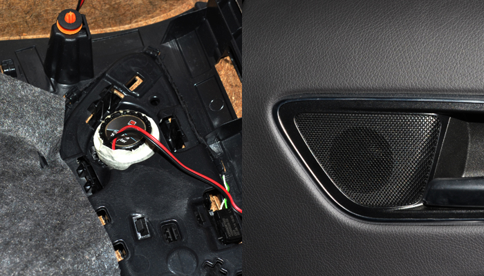 后声场魔雷玛仕舞高音原位安装在车门上。