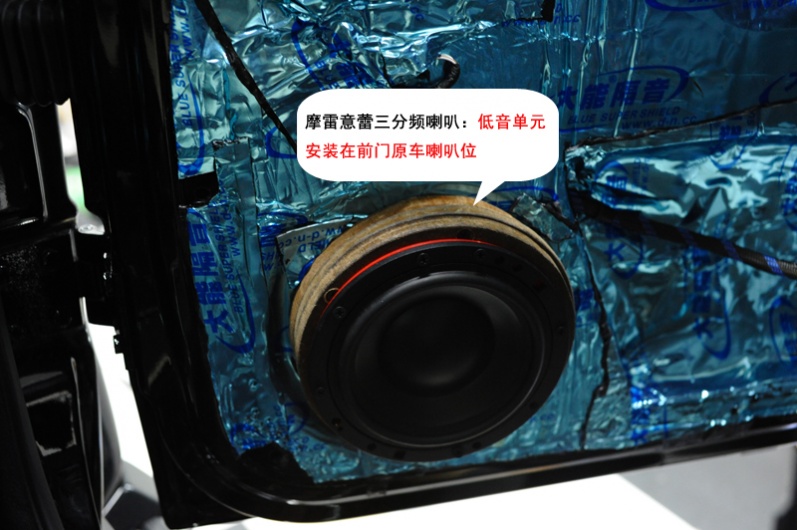 后声场的意蕾两分频喇叭依然是安装在后车门的原车喇叭位。