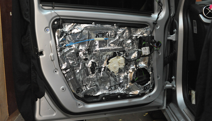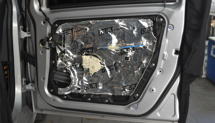 车主反映爱车车门风燥和尾箱噪音较大,此次将对车门做双层隔音,门板隔音能降低风燥,也为喇叭提供一个良好的播放环境。