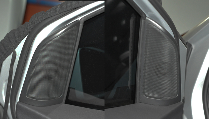 JBL GTO-609C一寸超小高音安装在原车三角板高音位。