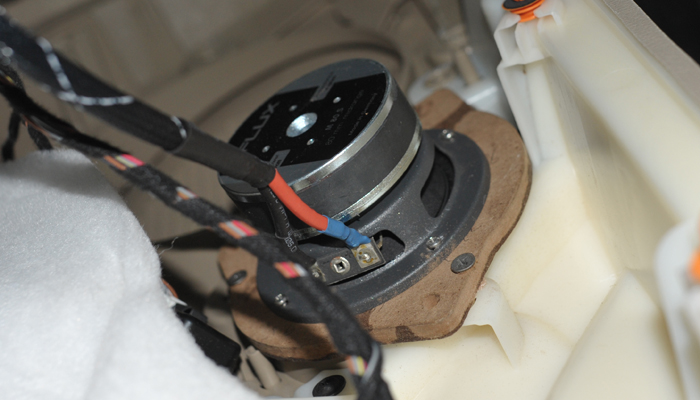 车主音乐品味非常高,原车音响系统根本入不了他的耳,经过了解网上了解,看到我们改过多款奔驰系列的音响系统,于是便预约前来试听,我们根据车主的要求推荐了德国佛伦诗大师系列MC361三分频,车主对其喇叭效果非常满意,当时变决定立即动工。
