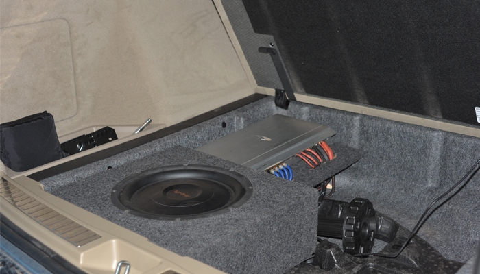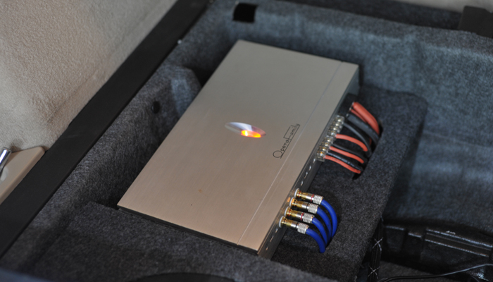 欧迪臣处理器、歌剧世家功放和超低音一起固定倒模安装在尾箱储物空间里。完全隐藏起来,根本看不出任何改动过的痕迹。