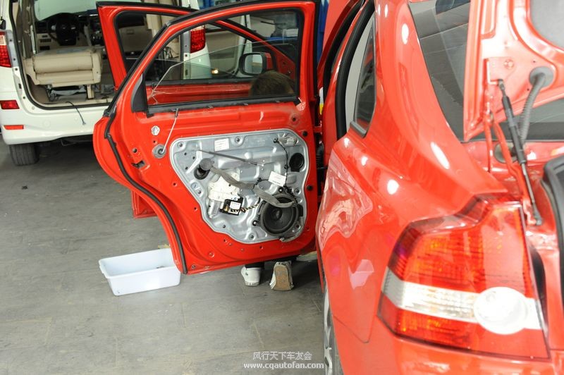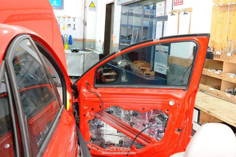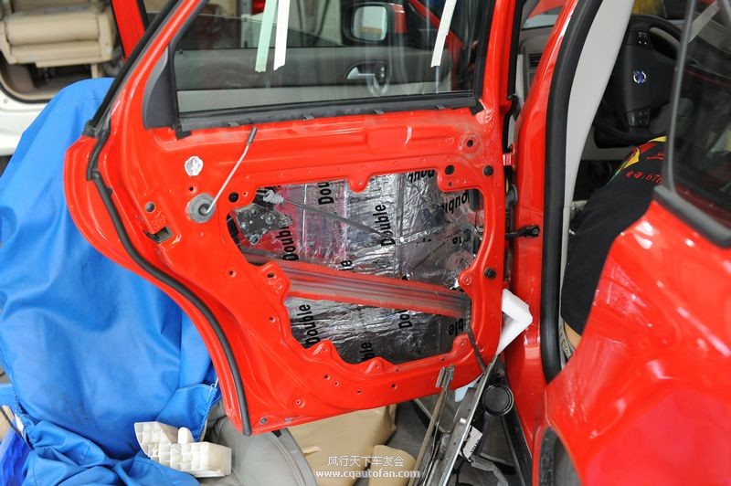 拆掉内层钢板,在车门内层粘贴隔音材料: