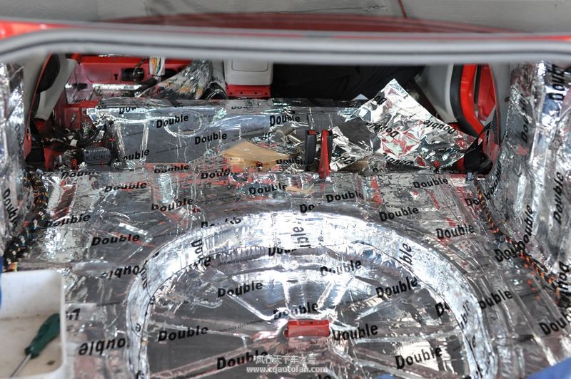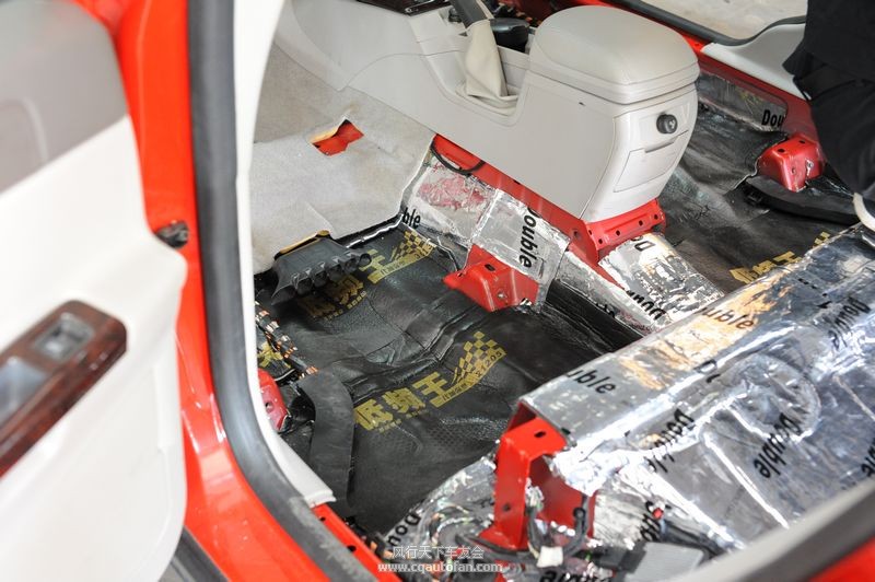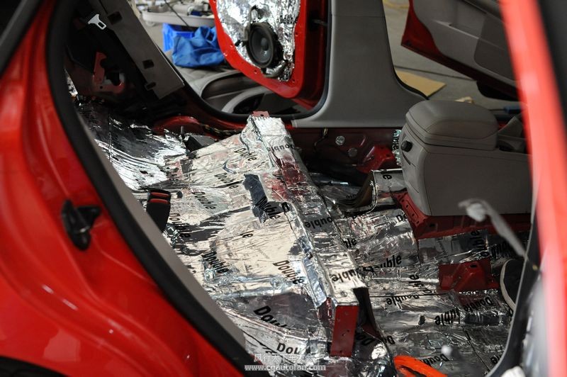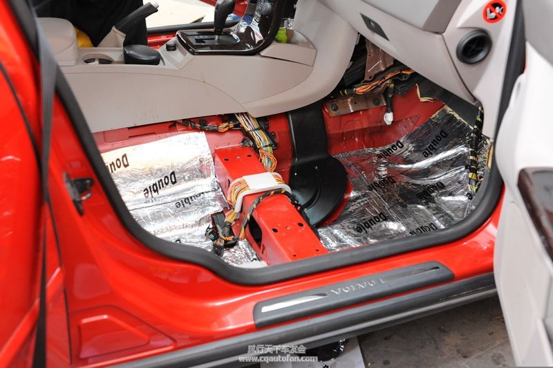 车,不仅是提供代步的工具,更是为了让驾乘者获得精神追求的满足,驾车是一种享受,一种乐趣,更是一种进取。 当听到沃尔沃这个品牌时,我们脑海中第一时间闪现的是:安全、北欧、低调等这类字眼!没错,沃尔沃一直是以致力于汽车安全技术闻名的品牌,它来自北欧的瑞典,如今归属于中国吉利旗下,给人们的印象一直是低调的。不过,今天这辆红色的沃尔沃S40也许会打破你以往对沃尔沃固有的印象哦。看到此S40的第一眼,我就被她炫丽的红色所惊艳,经过跟车主的交流之后,不得不说车主是一位时尚的玩车之人。在此之前,车主特地为爱车做了动力改装,但一直苦恼于爱车的噪音问题得不到解决,这次在网上找到我们,对我们的技术和服务都很认可,便来三正,要为爱车解决噪音问题——做全车三层隔音!值得注意的是:车主明确要求做三层隔音!首先粘贴两层我们的DOUBLE顶级隔音止振王材料,然后再铺上低频王,正如标题中提到的,沃尔沃Volvo S40斥巨资深度豪华隔音。