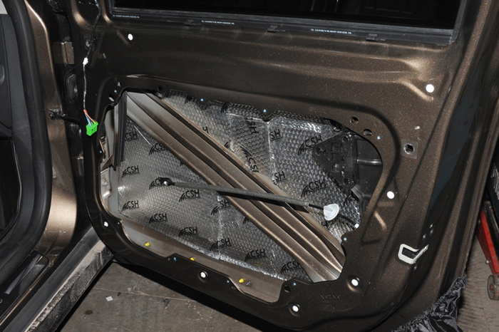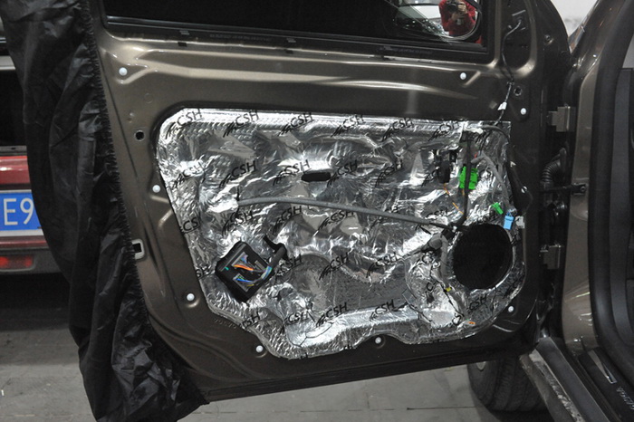 沃尔沃XC60的汽车门板内部孔状结构比较大,隔音措施也有很大的提升空间。重庆三正的改装技师使用CSH银卫盾将汽车门板隔音的不足之处做了补充,隔音材料贴合的十分紧密,每一个细节都处理的十分到位,保证了汽车能够有一个完美的隔音环境。