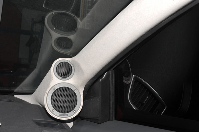 丹麦丹拿S372中音、高音A柱倒模安装于A柱上