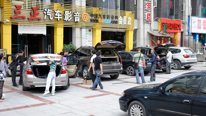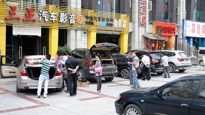 门口三辆宝马正在施工,车主们像是越好了一样,都在这个时候来了,师傅们真是忙得不可开交啊!