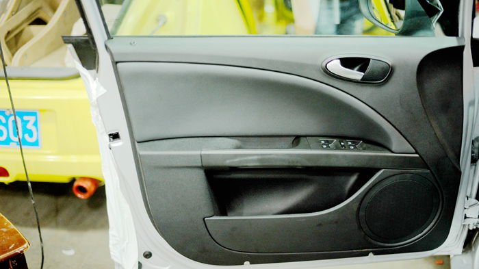 LEON车主想必也是个性情中人,刚提车,车牌都没来得及上,就到我们店里来改装音响了,这大概也体现了车主的爱之深、心之切吧!