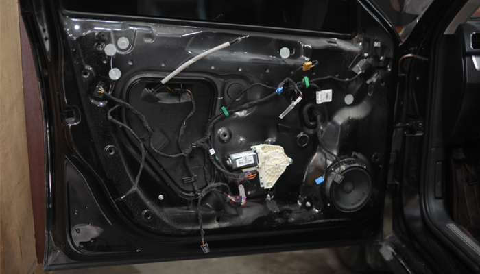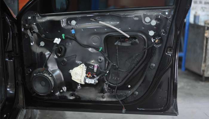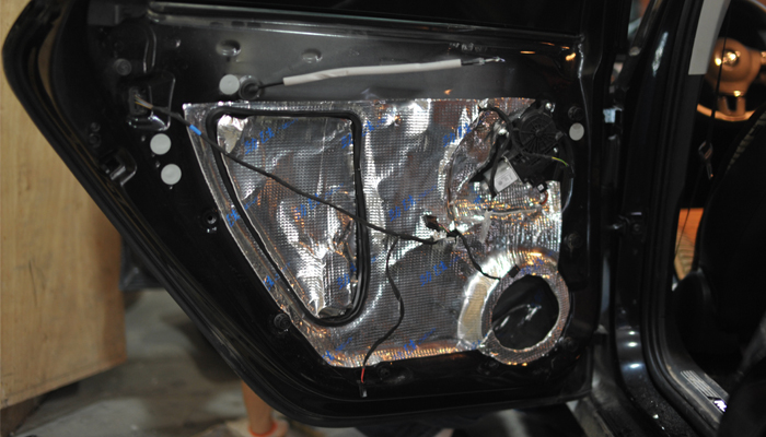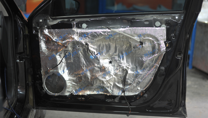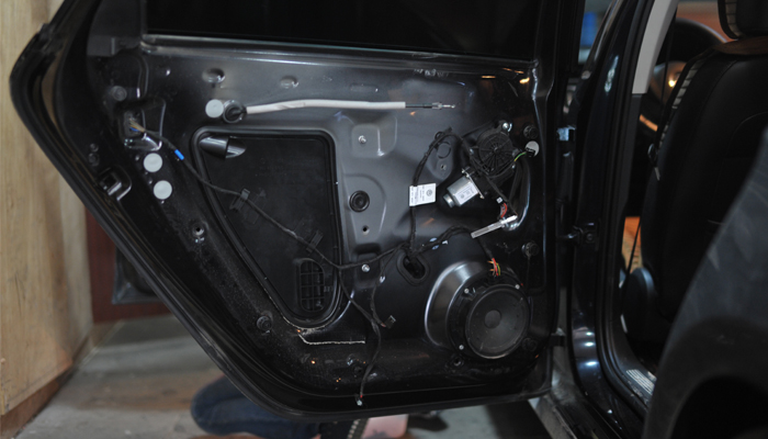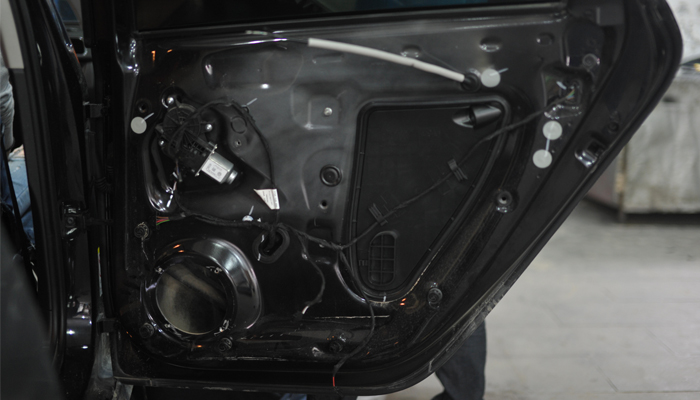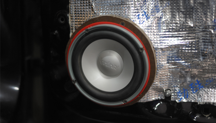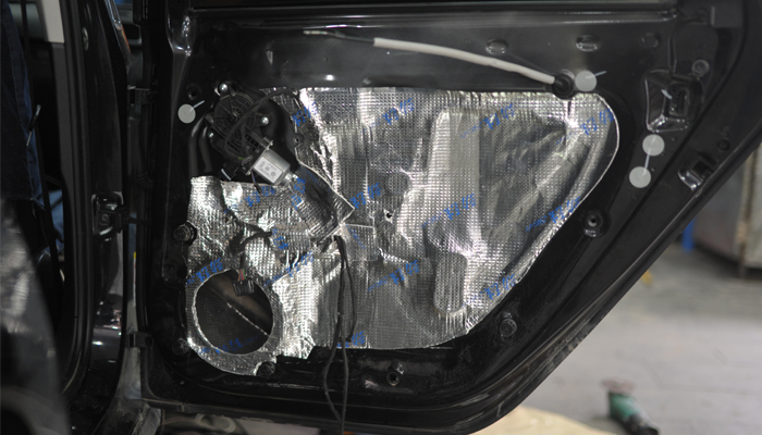 改装音响之前需要对四门做双层隔音,对喇叭播放环境有着不错的提升。拆开门板可以清楚看到原车门板是没有做任何隔音措施的。