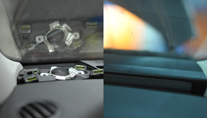 前声场中低音喇叭和高音都选择原位安装,简单方便同时还能做到无损安装。