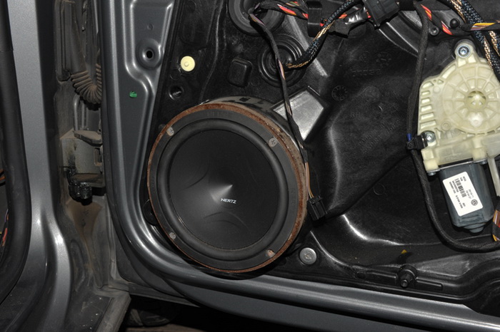 赫兹FCK165中低音喇叭安装于前门板原位处