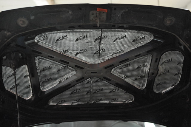 引擎盖的重要处理就是减震,用CSH隔音板对引擎盖进行止振处理,具体做法是将隔音材料按照引擎盖上的凹凸部位裁剪成块状进行粘贴,改变引擎盖的共振频率降低发动机噪音透过引擎盖传播。成本控制近乎苛刻的情况下,原车隔音的状况很难有大幅度的改善,为了让自己拥有一个健康的车生活,在给自己爱车做隔音的时候,一定要选择专业的改装店家,隔音产品品质有保障,专业细致的施工也让隔音效果更加有效。