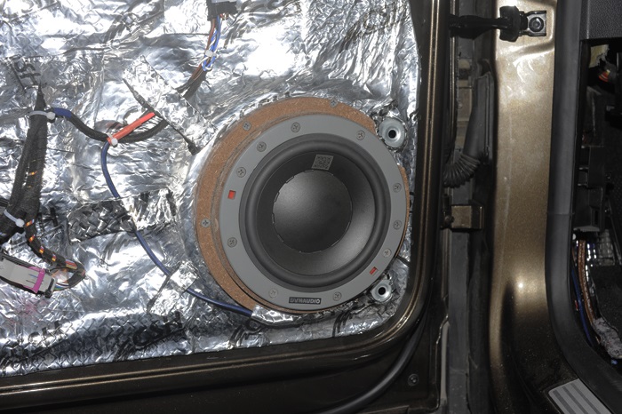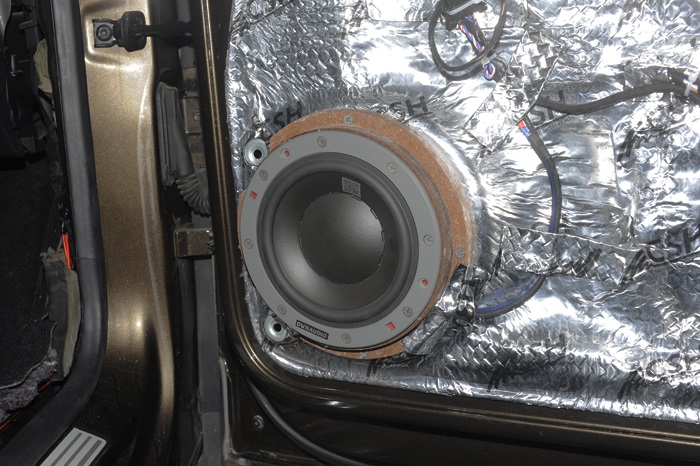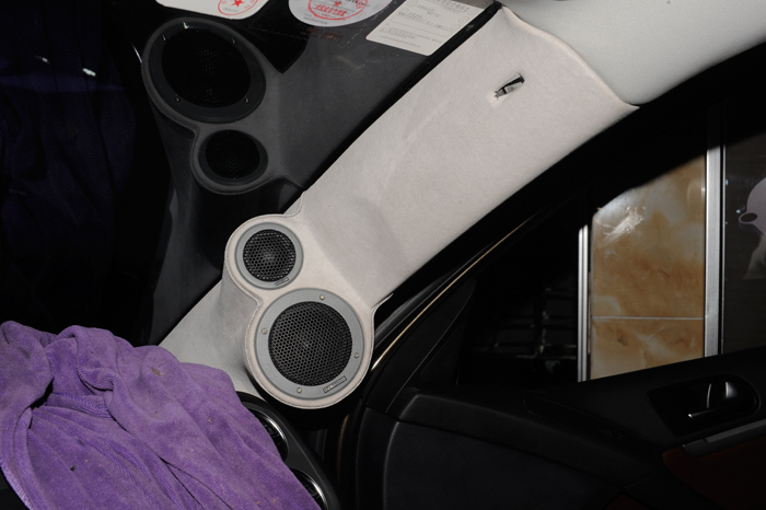 中低音喇叭安装在门板原车喇叭位,做好隔音以后可以减小门板振动,降低噪音,为喇叭提供一个优异的播放箱体。