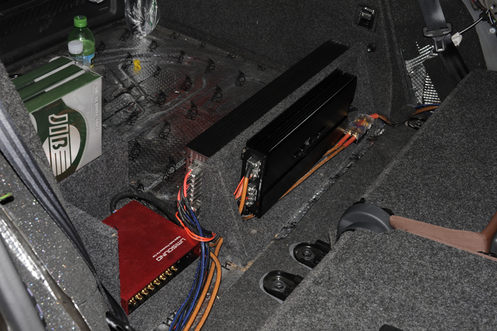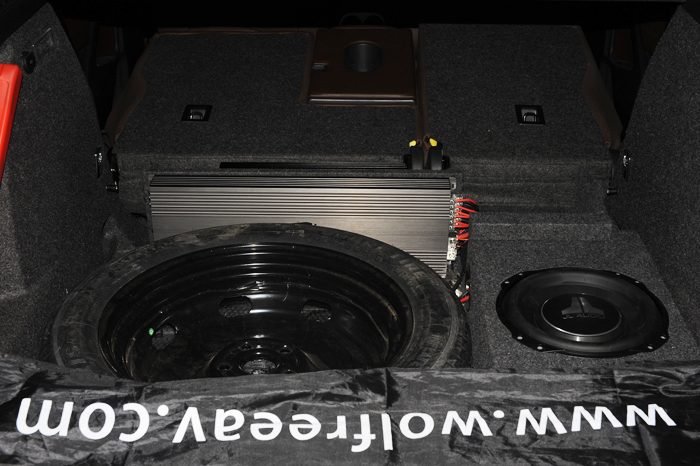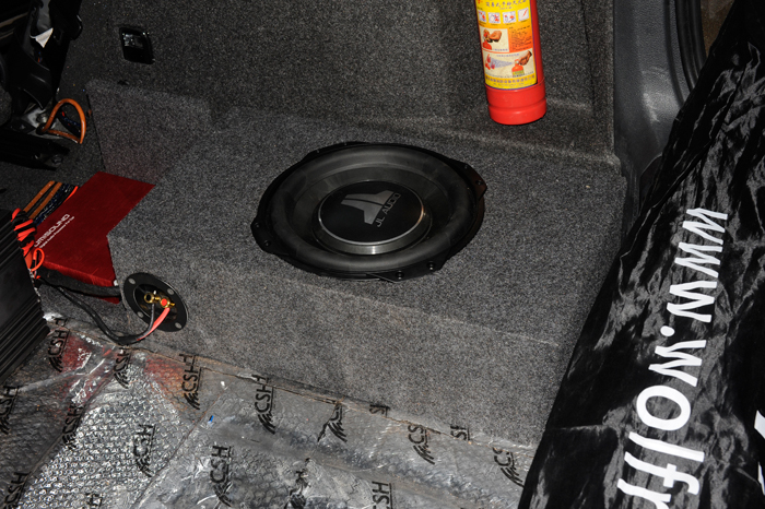 丹拿Esotan372使用的是一台骇客Z150.6功放做主动,骇客功放功率大、音色高贵、质感精准,非常适合推动丹拿喇叭。汽车在行驶中,轮胎与路面摩擦胎噪,车体与空气碰撞产生的风切声,常使低音减弱。安装捷力10TW3低音炮来补充这个频段,增强低音区域,让人更好地聆听。