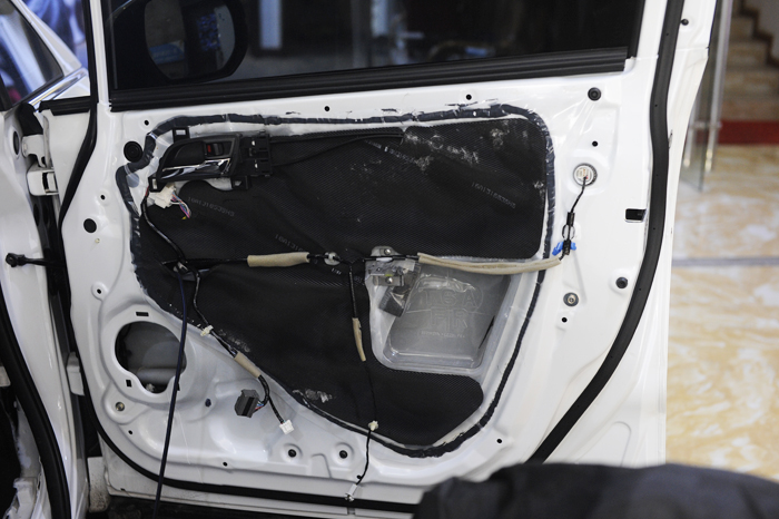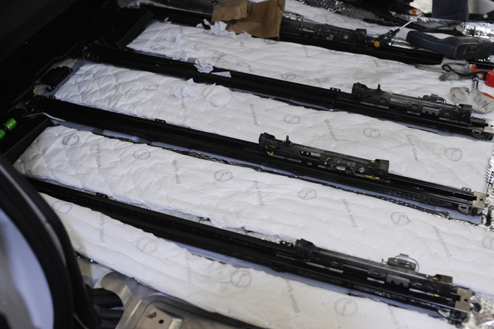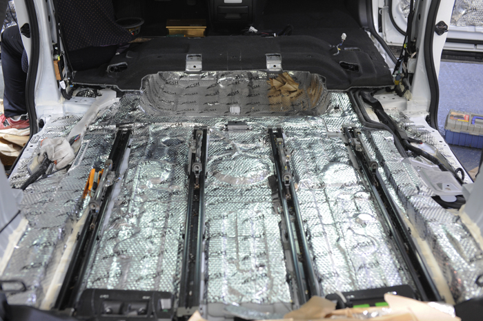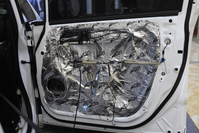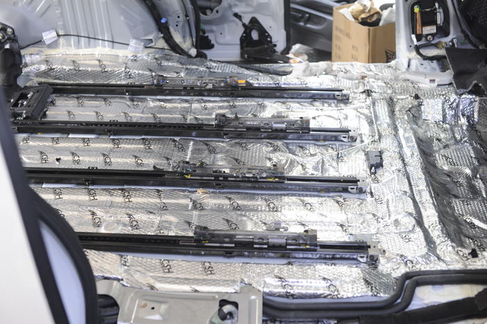 既然决定要做隔音,那就一次性把整车都做了。隔音材料选用的是俄罗斯STP舒适系列CSH银卫盾加锐宁吸音棉,止振吸音效果更好。