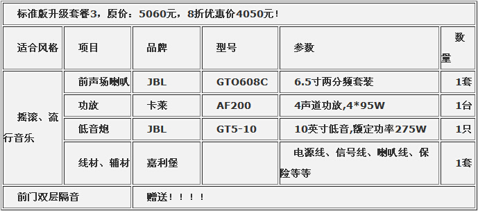 通过和车主的沟通,了解到车主喜欢流行音乐,因此我们给她推荐了本店2013春季版特价优惠套餐中适合流行音乐的——标准版升级套餐3