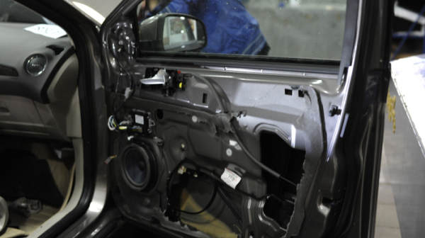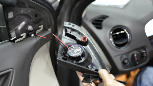 隔音做好后,紧接着安装喇叭,然后再还原车门,细心的师傅们做工精细,还原后的车门完全看不出被拆开过。
