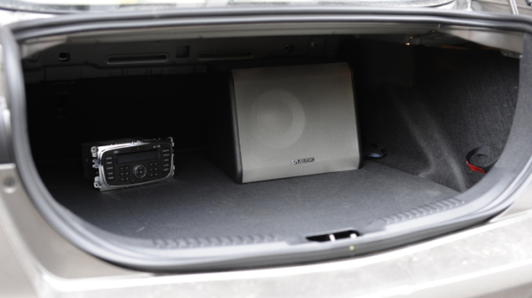 低音安放在尾箱的位置: