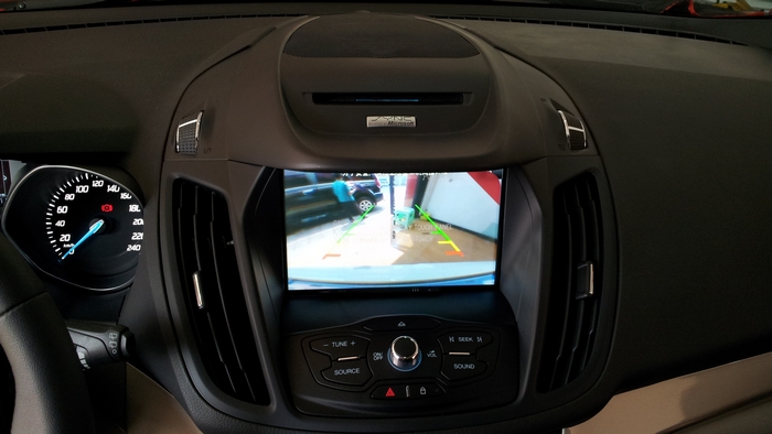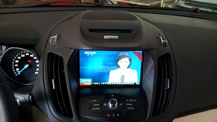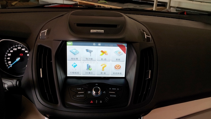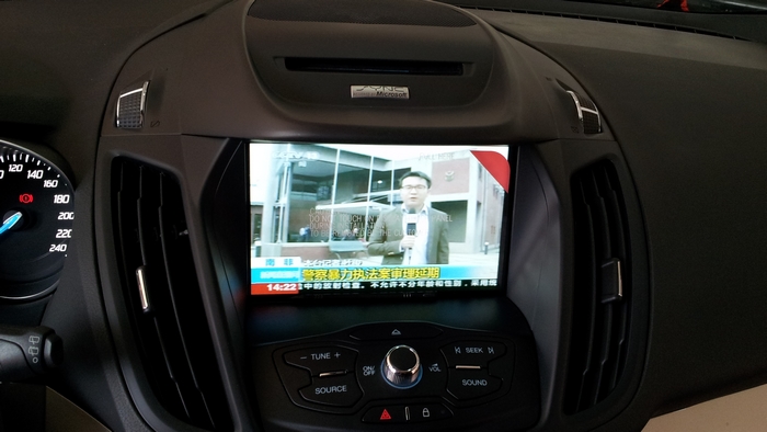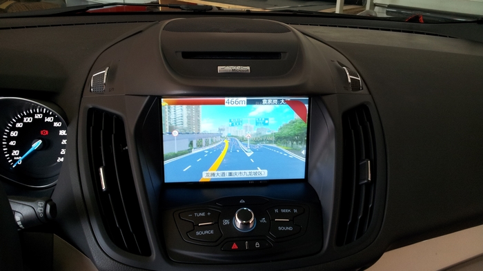 福特最新推出的SUV——2013款翼虎就以其卓越的性能广受好评,销售火爆。高配的翼虎中控台顶端的8英寸高清液晶屏显示效果出众,采用微软公司开发SYNC系统,多媒体选择和空调控制的时候它能将复杂的功能清晰直观的展现出来,界面风格时尚,支持触摸操作,非常方便。虽出厂原配了可视倒车影像,但遗是没有配备导航功能。所以此次车主提车后就赶来升级了凯立德3D实景导航,同时加装了CMMB数字电视功能。