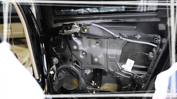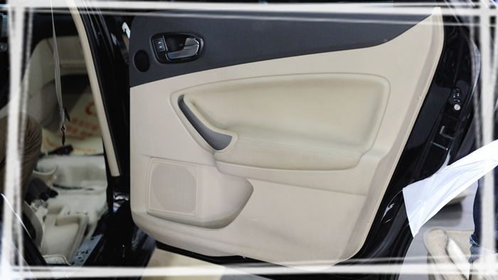 5.复原。隔音完成,便是还原车门座椅。师傅们熟练的施工技巧展示的一露无疑,还原后的车门完全看不出被拆过的痕迹。