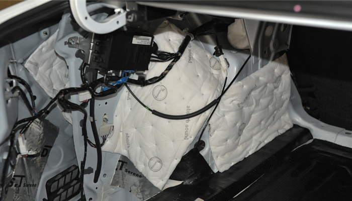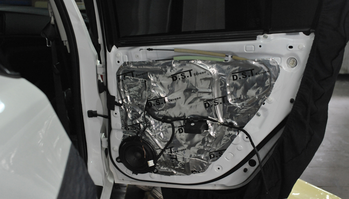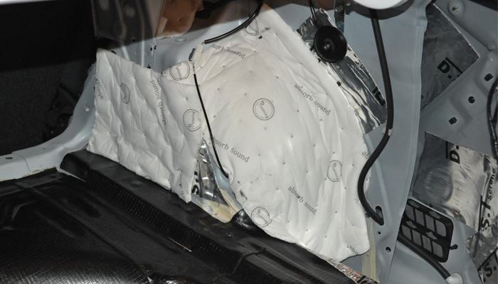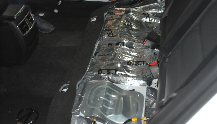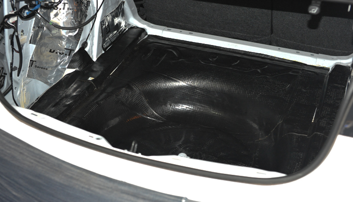 尾箱这个单独的空间在高速行驶时,会产生嗡嗡作响的噪音,风燥、路燥和胎噪都比较大。使用俄罗斯进口隔音材料STP V卫士加锐宁吸音棉完美吸收噪音。