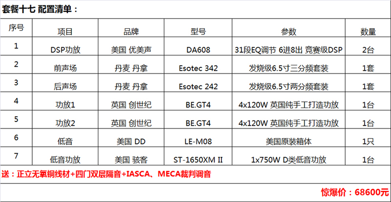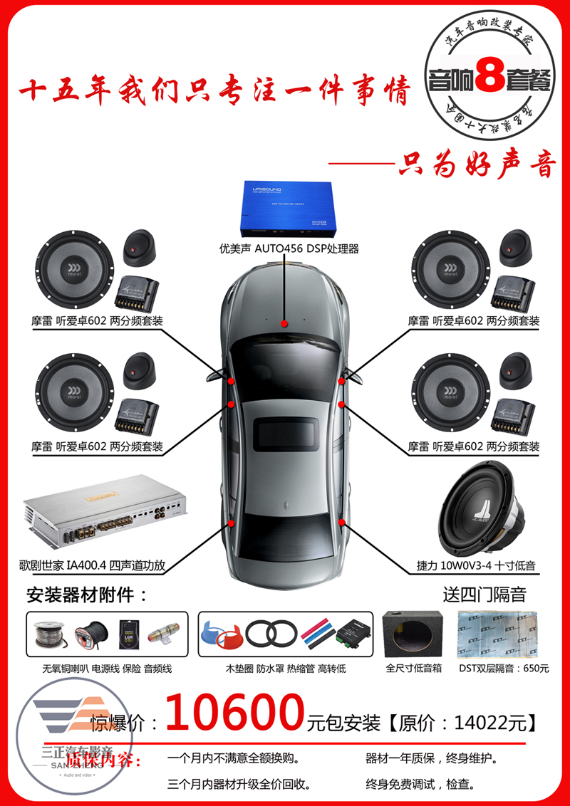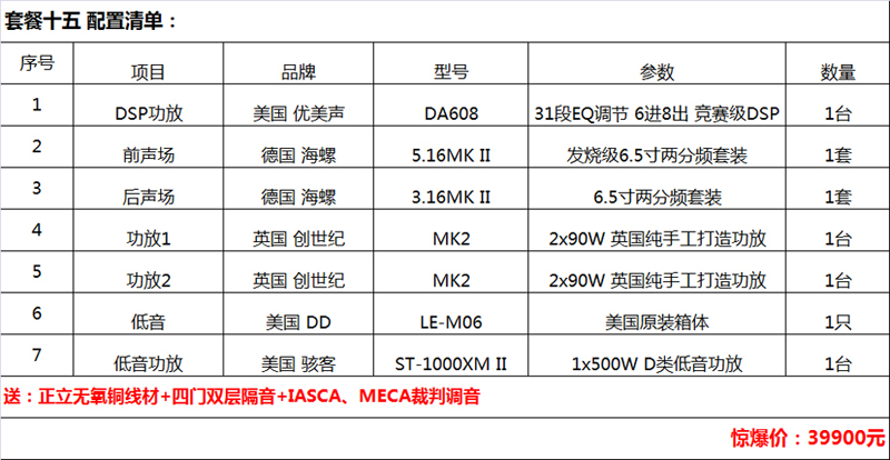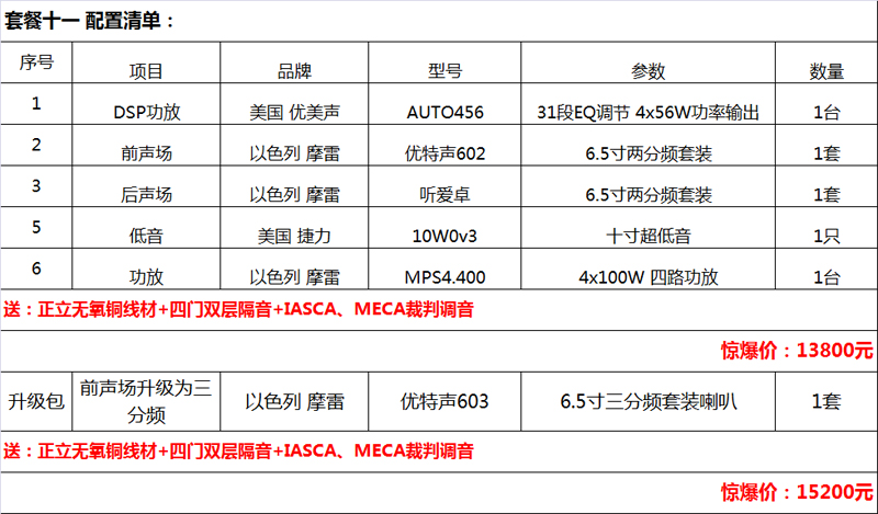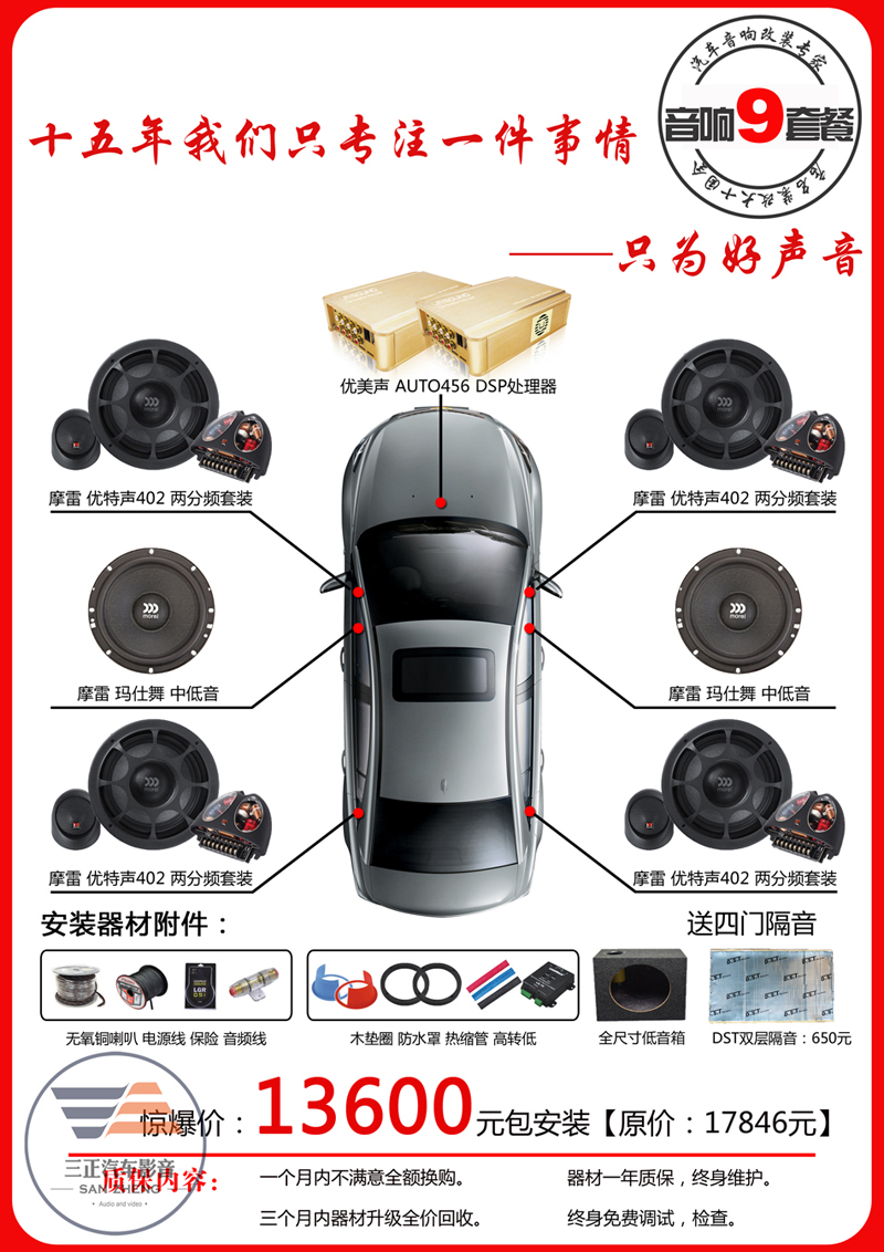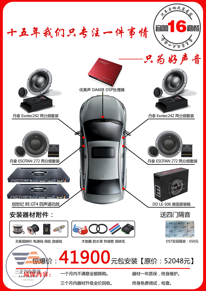 全新2019版音响改装方案震撼来袭,我们从音质效果、音乐风格、价格等各方面综合考虑,精心搭配出了十几款音响升级配置方案,有适合听流行音乐的,也有发烧人声的,还有综合类的,当然更少不了摇滚风格的。价格方面,从千元入门级的到万元级发烧的应有尽有,欢迎挑选,欢迎来店现场试听,总有一款适合您!