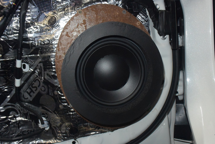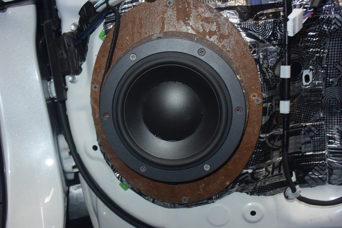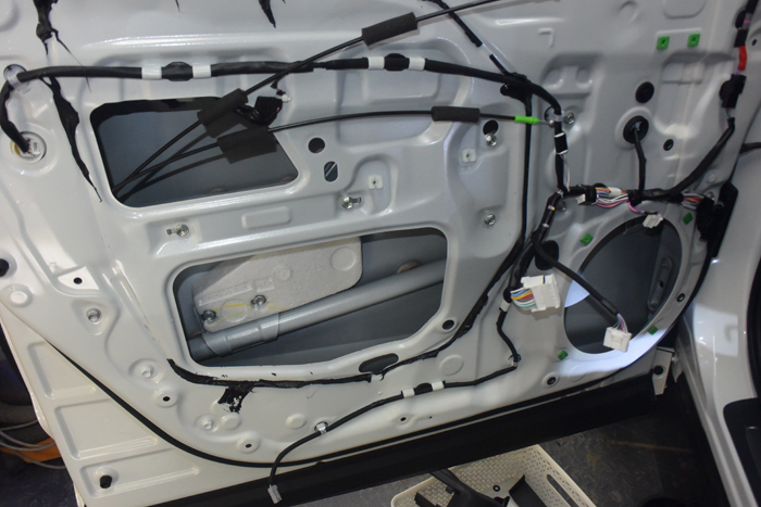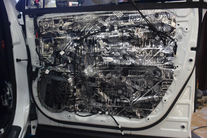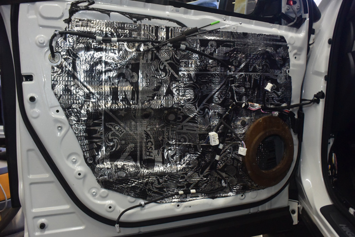 原车门板是没有隔音止振措施,改装音响前需要多门板进行隔音止振处理,减小噪音对音响效果的影响。
