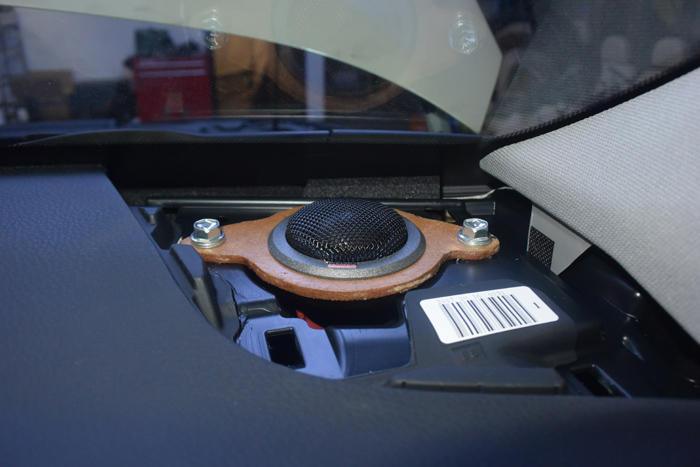 根据车主需求,选了丹拿242搭配骇客功放,尾箱低音倒模安装,节省尾箱空间。丹拿Esotec242是两分频喇叭中的佼佼者,绝对的“大腕”,大口径铝音圈的MSP5.75"低音MW152单元,更值得称道的是高音单元MD 102,1.1英寸铝音圈软球顶,双磁铁结构,音圈应用磁流体冷却技术设计,高频表现无可挑剔。前声场丹拿242搭配骇客Z150.4LE功放,佛伦诗低音使用骇客低音功放。