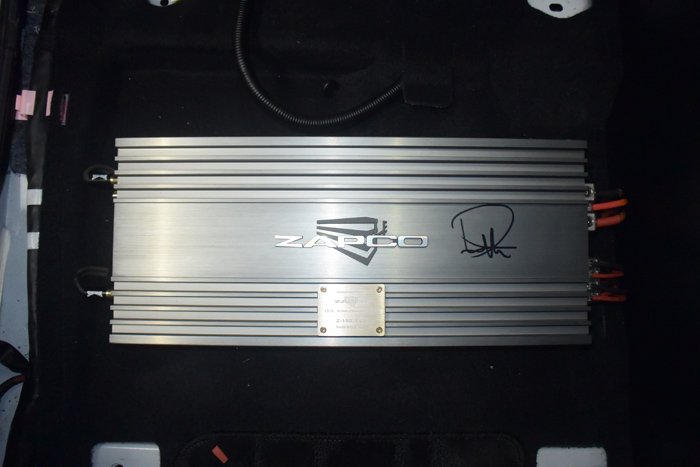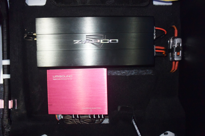 两台骇客功放分别安装在前排座位下。