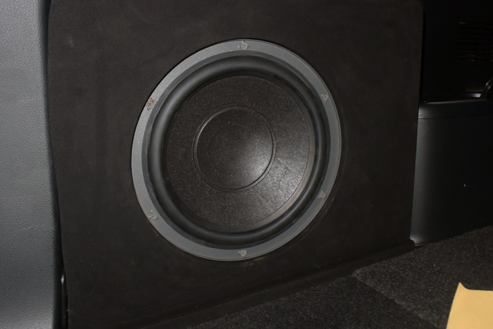 车主提车不想占用尾箱空间,为此将低音倒模在尾箱左边。