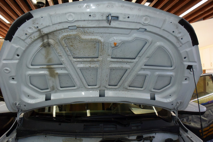 加固引擎盖钣金厚度,降低发动机高转速引起的引擎盖铁皮共振、降低通过引擎盖传出的发动机噪音。
