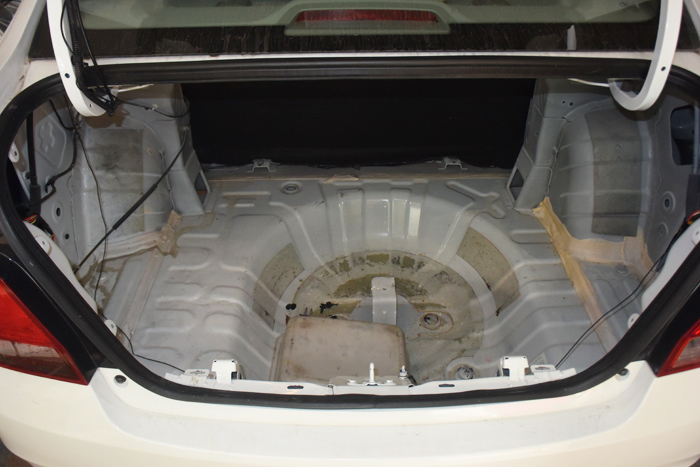 尾箱隔音后可以加固后翼子板及后备箱底部铁皮厚度,降低行车中,后翼子板及后轮引起的共振噪音、后轮的胎噪、排气管的噪音、外界通过后下部分传入到车内的噪音。