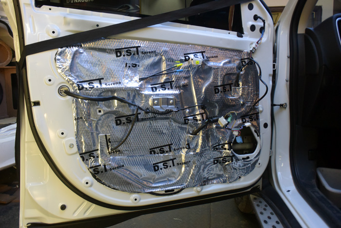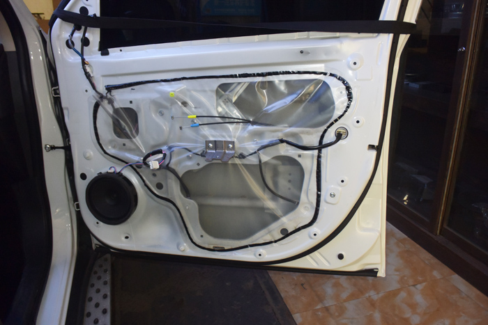 音响升级前,需要对门板进行隔音降噪,提升门板铁皮强度降低共振,抑制噪音对音响的干扰。