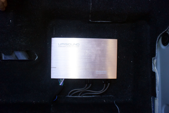优美声DA460DSP音频处理器安装在副驾驶座位下。