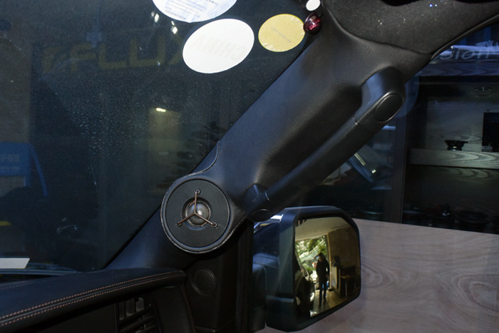 前声场Esotar² 650中低音原位安装,Esotar² 110高音则选择倒模安装在A柱。
