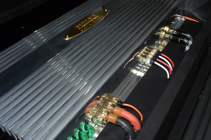 整个系统所有喇叭全部都采用英国原装创世纪功放进行单独推动。创世纪公司一直以甜美丰满而生动的声音著称,完美匹配各种全球知名的扬声器单元,中高音频的质量和低频速度可称得上是全球最优秀的汽车功放。