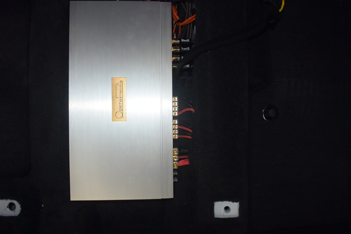歌剧世家VA400.4功放隐藏安装在副驾驶座位下。