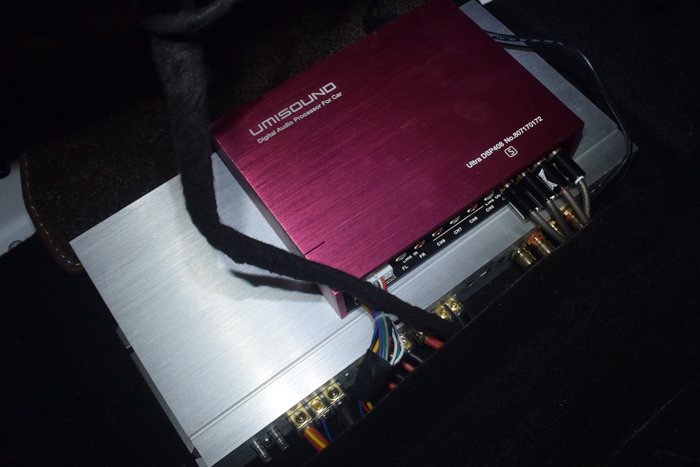 歌剧世家功放和优美声处理器选择安装在副驾驶座位下,JBL超低音在原车超低音位置隐藏安装。