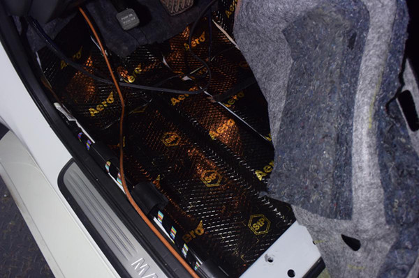 正副驾驶隔音选用的STP航空炸弹富含弹性的性能适合安装表面复杂的区域,以提供最大的减振效果。材料防水,并且防止水和氧气直接跟底板接触,防止底板腐蚀。强大的隔热功能,夏天能阻止热量进入车厢,同时冬天又有保温功能。由于其特殊的结构性以及丁基胶成分,材料本身具有极强的耐磨性,耐用性极好。