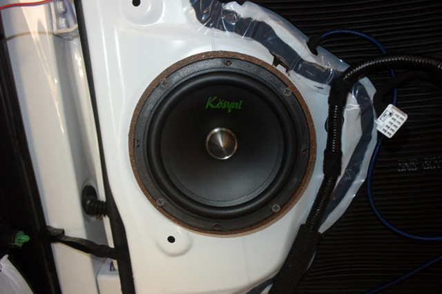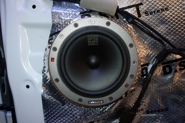 本田CRV原车门板的隔音较差,为了给扬声器打造结实的箱体,隔音是必须要做的,重庆三正的改装技师在门板上做了DST双层隔音,把车门带来的噪音降到最低。隔音完成后,丹麦丹拿40周年纪念版ESOTAN236中低音喇叭安装在前门板原位处.