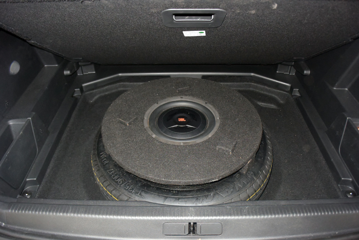 低音选择倒模安装在尾箱备胎处,在保证效果的同时不占用尾箱空间。
