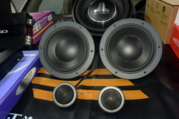 为了让前声场丹拿242和捷力10TW3低音发挥出完美音质效果,选择创世纪功放来推动这套丹拿242,低音则使用单独的骇客低音功放来保证大动态下功率的充沛。优美声DA408S DSP处理器,则针对车内不同的聆听位置精确地调整声音延时,确保每个乘客都能享受到精准、高贵、华美的最佳音色。音源部分则采用歌行DSD A3主机,好的音源能大大提升整套音响系统的音质效果。